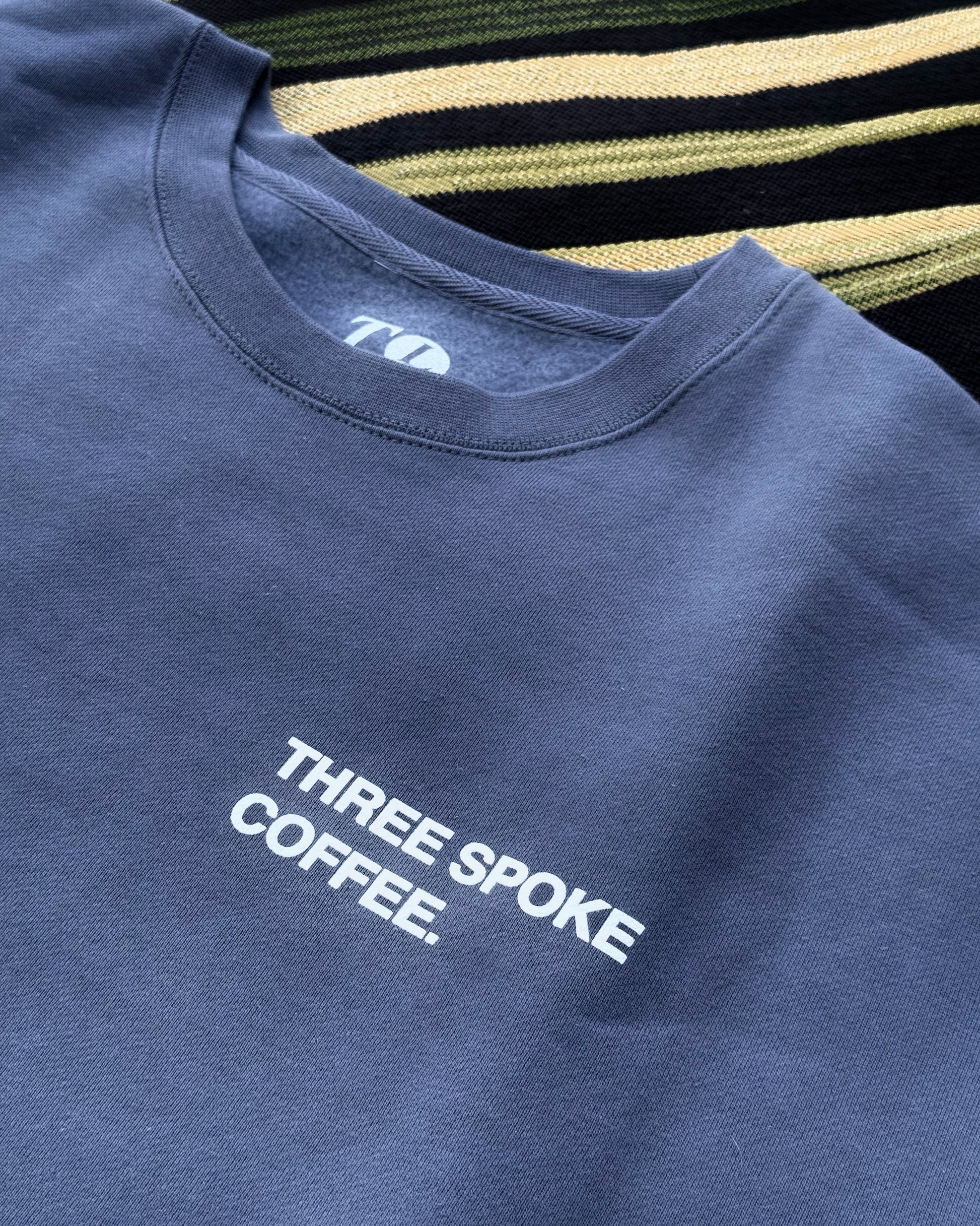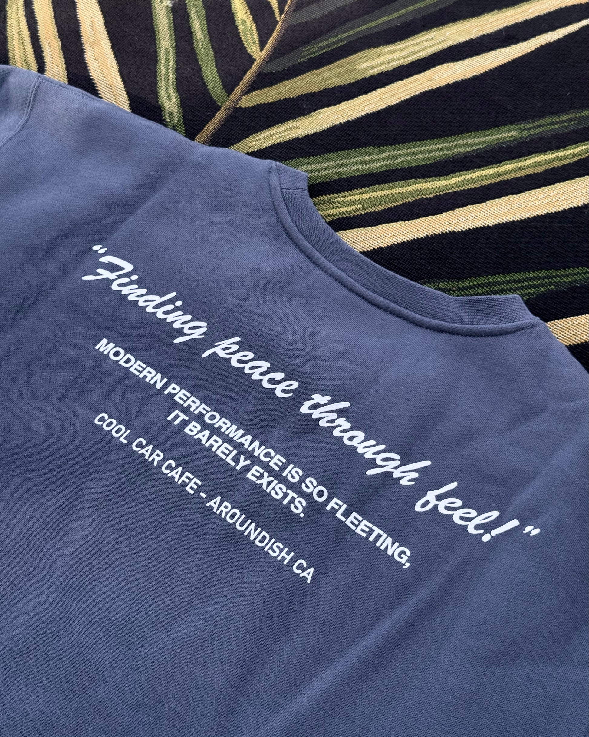 Our 10oz premium heavyweight crew neck in slate blue is a comfy way to bring us back when we burnout from chasing superlatives by reminding us we can always "Find Peace Through Feel". This ethos is at the center of who we are at TSC and we are excited to be able to share it with you all.